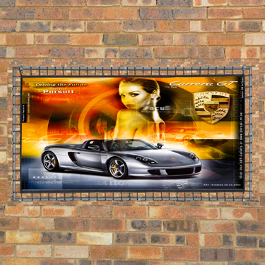 The Billboard Large is a make to order wall mount aluminium frame which accomodates a printed PVC sheet. The aluminium profile includes four cavities for secure print fastening by measn of adjustable hook and elastic, adjustable wall mount brackets can be offset to accomodate wall cavities and or interferences, free standing units can be made, collapsible and compact – with or without full colour print.