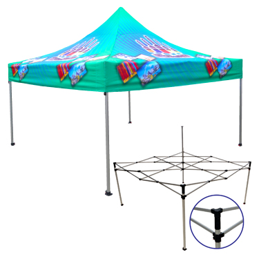 The Gazebo 4 system include a sturdy aluminium tubular frame, carry bag, with or without full colour roof and overlay, side panel/s print – fully collapsible and compact. Standard available size include: